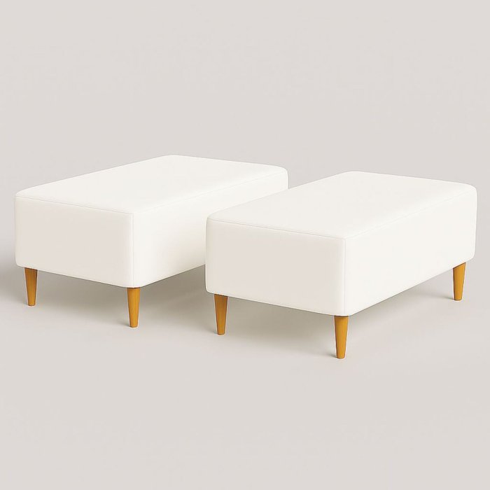 Kit 2 Puffs Bela Manu Madri Pés Palito Couro-vegano Branco