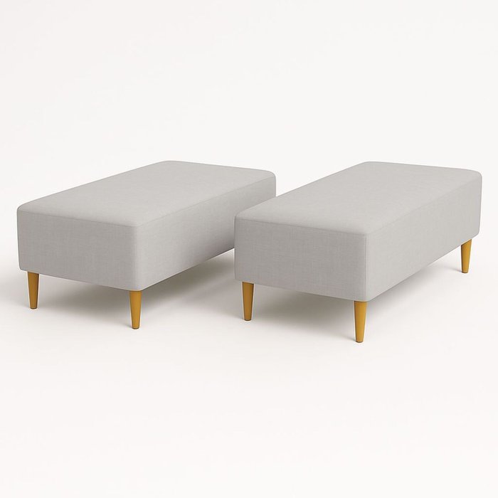 Fabricados com estrutura de eucalipto reflorestado e espuma D26, os puffes garantem firmeza, conforto e durabilidade. O revestimento de linho é agradável ao toque, resistente e de fácil limpeza.