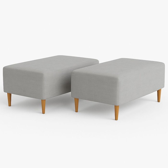 Kit 2 Puffs Bela Manu Madri Pés Palito e Tecido Linho Cinza