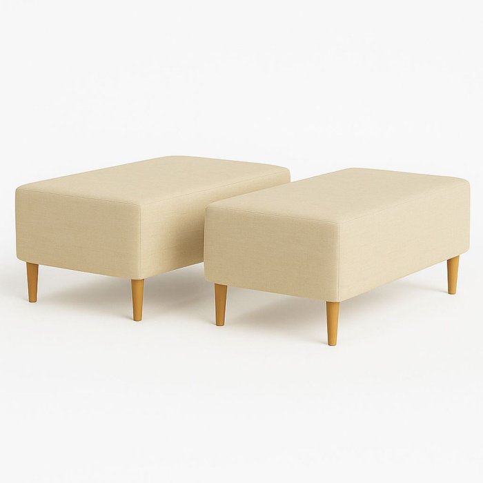 Produzidos com estrutura reforçada em madeira de eucalipto reflorestado, os puffes oferecem resistência e estabilidade superiores. O assento com espuma D26 de alta densidade garante conforto e suporte prolongado, mantendo o formato e o aspecto impecável ao longo do tempo. O revestimento em linho bege é agradável ao toque e proporciona uma estética sofisticada e acolhedora.