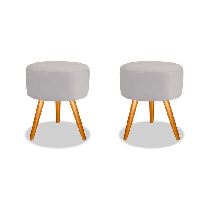 Kit 2 Puffs Classic Pés Palito Sued Cinza Claro - Kimi Design