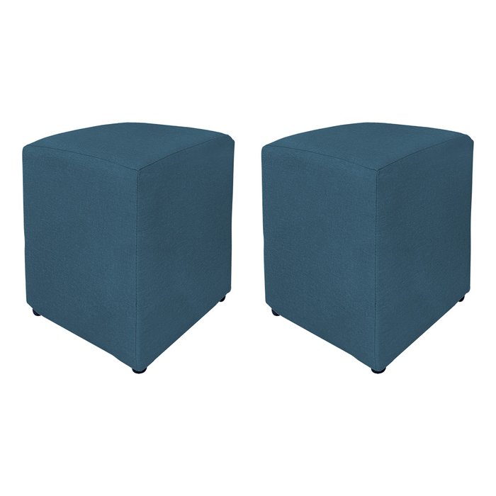 Kit 2 Puffs Cubos Decorativo Laila em Linho Azul Marinho