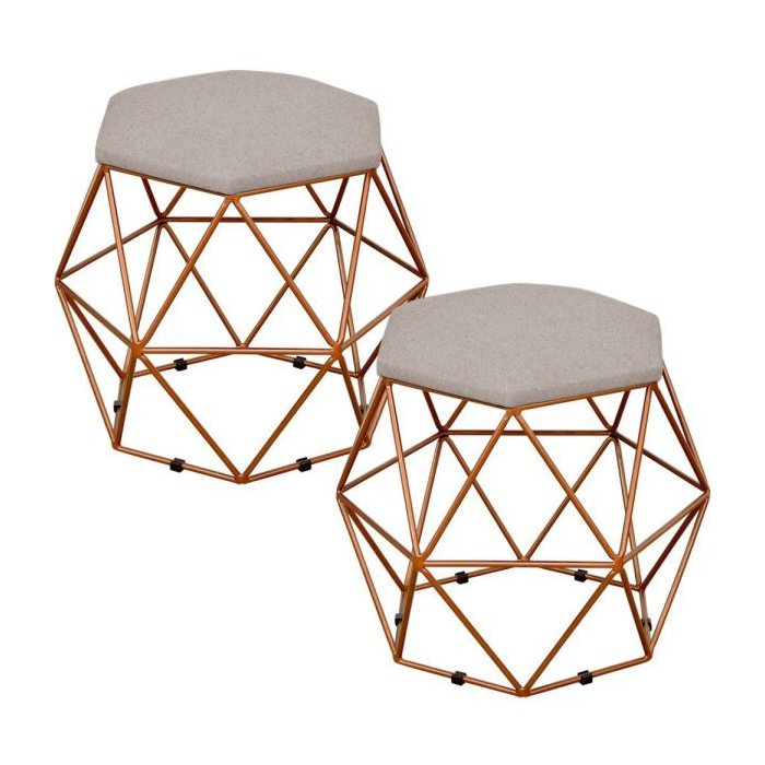 Kit 2 Puffs Decorativo Aramado Bronze Six Linho Bege Bronze