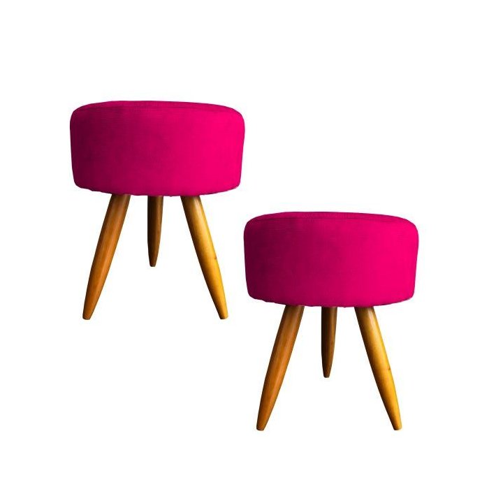 Kit 2 Puffs Decorativos para Sala Redondo Suede Pink