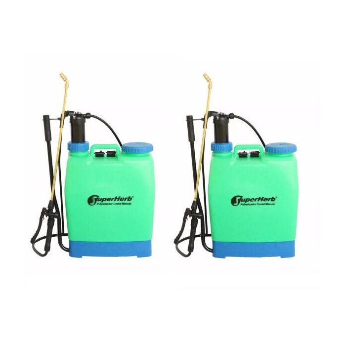 Kit com 2 Unidades Pulverizador Manual 20 Litros Lança com bico cônico regulável de metal Acompanha 4 bicos (1 cônico regulável de metal, 1 cônico duplo, 1 cônico e 1 leque invertido) 1 Embolo extra Temos todas as peças de reposição Peso 2,8 kg MANUAL E CATALOGO DE PEÇAS EM PORTUGUÊS, ASSISTÊNCIA TÉCNICA TOTAL Marca: SuperAgri