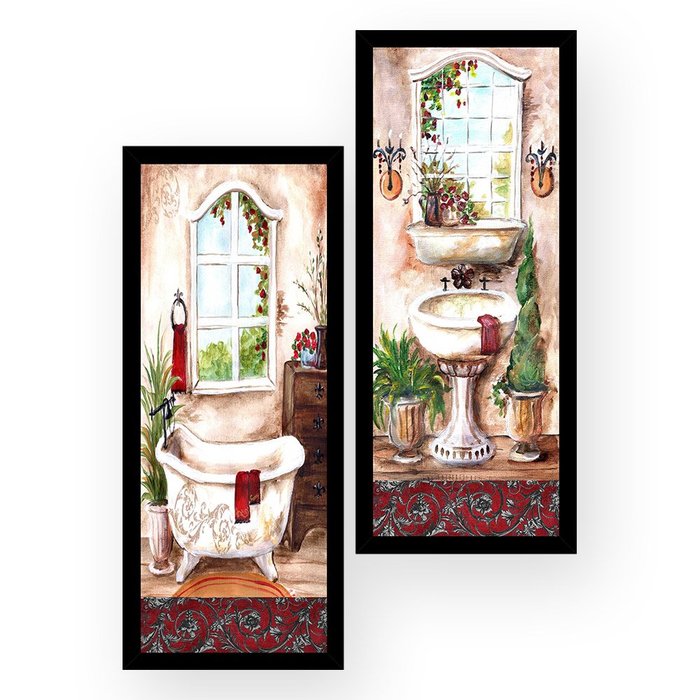 Kit 2 Quadros Banheiro Lavabo Banheiro Vintage - Preto