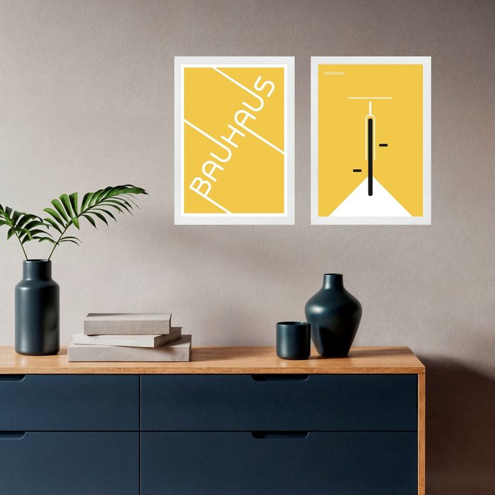 Kit 2 Quadros Bauhaus - Bicicleta Amarela 33x24cm:moldura Branca Moldura branca