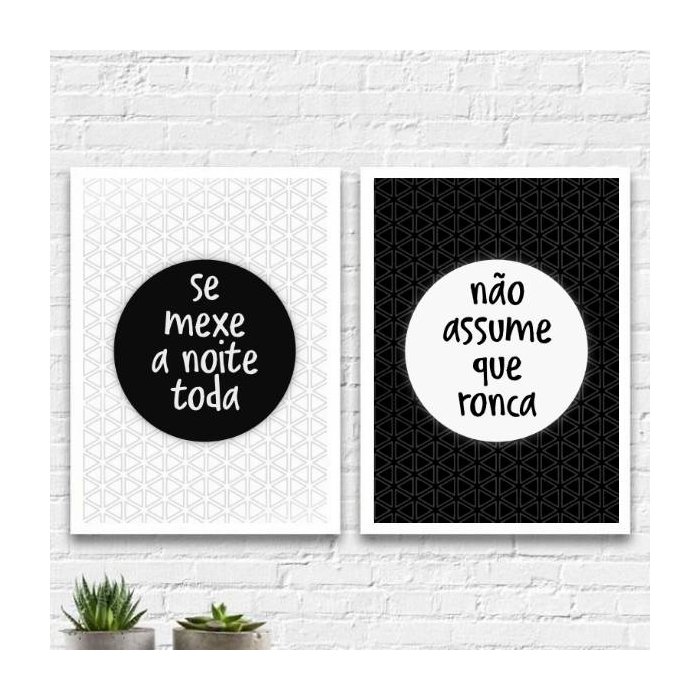 kit 2 Quadros Casal Ronca E Se Mexe 24x18cm - com vidro:Madeira preta preta