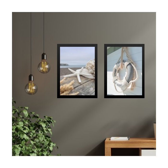 Kit 2 Quadros Coleção Praia- Boia e Estrela Mar 33x24cm:madeira Branca