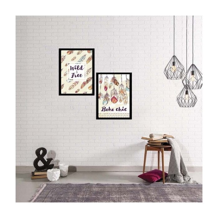 Kit 2 Quadros com Moldura Boho Chic Preto