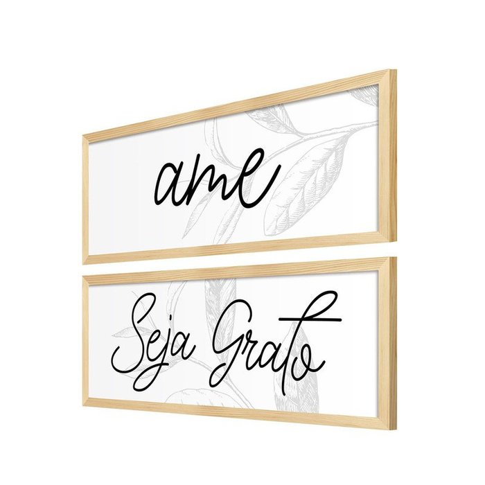 Kit 2 Quadros com Moldura Frases Amor Gratidão Folhas Sala