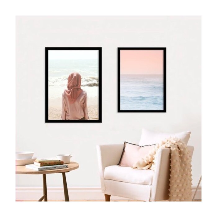 Kit 2 Quadros com Moldura Sea Pink Preto