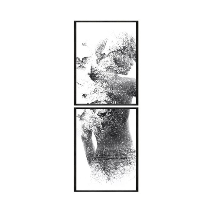 KIT 2 QUADROS DECORATIVOS 40X60CM VIDRO ARTE LIBERDADE NATUREZA MULHER PASSAROS PINTOGRAFIA PB ART0