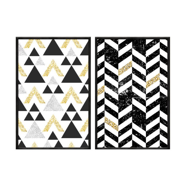 Kit 2 Quadros Decorativos 60x80cm Cada Canvas Geometricos Dourados Abg004