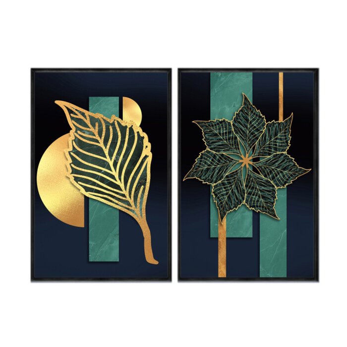 Kit 2 Quadros Decorativos 60x80cm Canvas Abstrato Flores e Folhas Art020