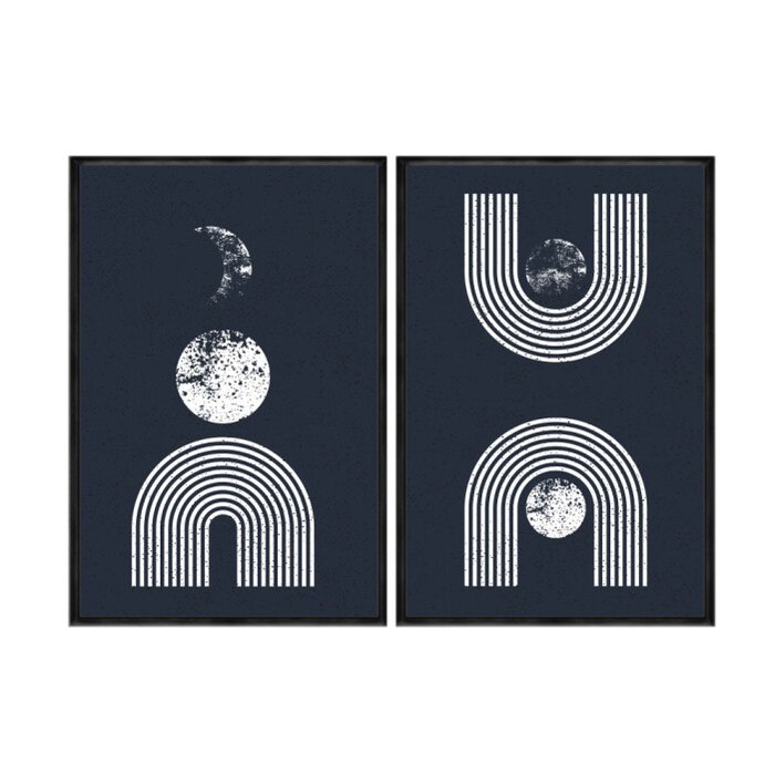 Kit 2 Quadros Decorativos 60x80cm Canvas Formas Lua Azul Marinho Abg029