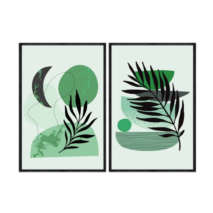 Kit 2 Quadros Decorativos 60x80cm Vidro Abstrato Formas Verde Abg022 Verde