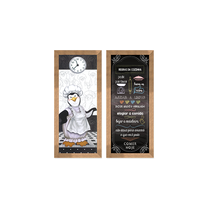 Kit 2 Quadros Decorativos Cozinha Regras da Casa Pinguim - Natural Tingido Natural Tingido