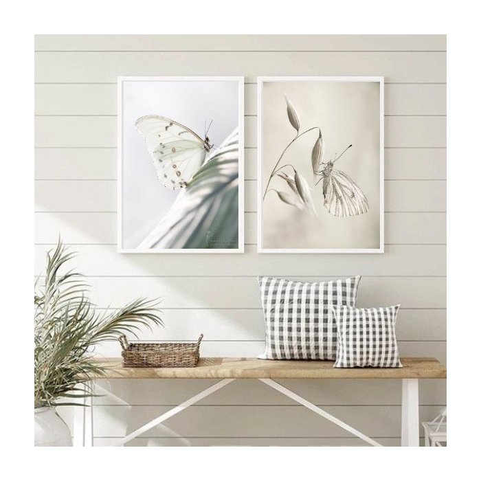 Kit 2 Quadros Fotografias Borboletas Brancas 24x18cm:madeira Preta