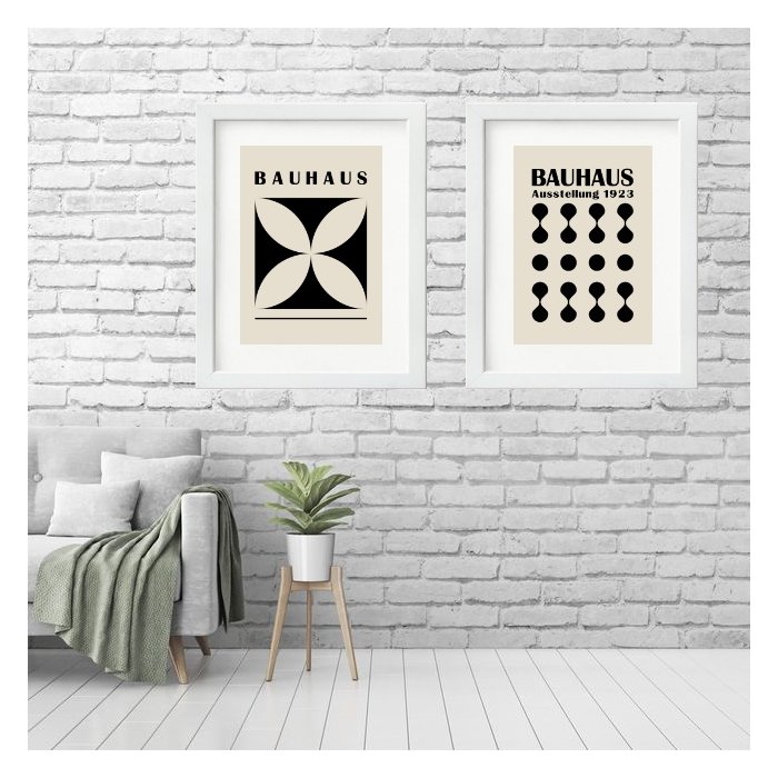 Kit 2 Quadros Grandes Bauhaus Preto - 60x48cm:madeira Preta