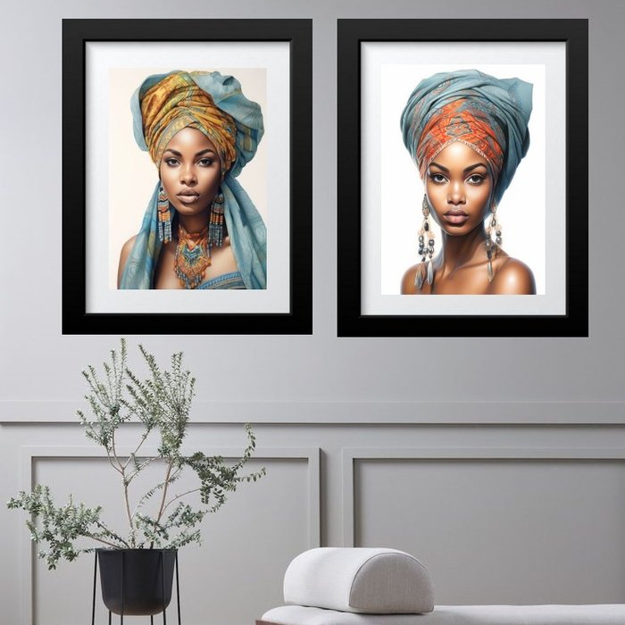 Kit 2 Quadros Grandes Mulher Raça Negra - 60x48cm:madeira Branca Branca