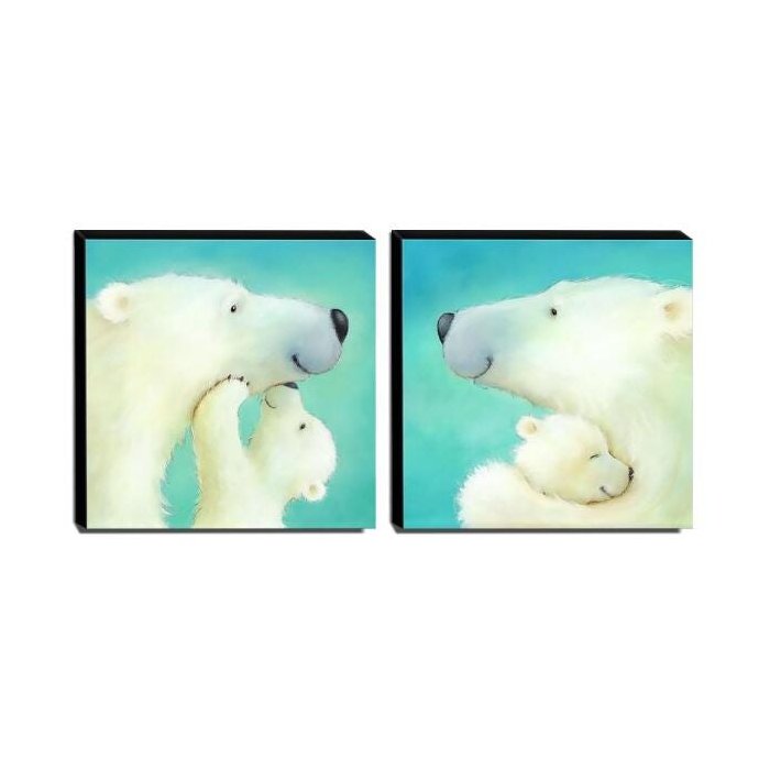 kit 2 Quadros Infantis Ursos Branco Canvas 30x30cm-INF419 Multicolorido