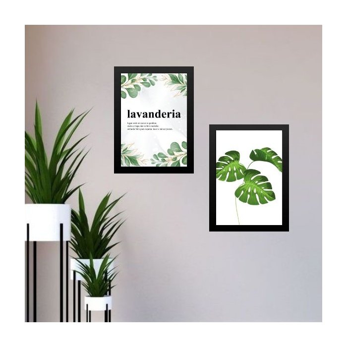Kit 2 Quadros Lavanderia - Plantas 45x34cm:madeira Branca