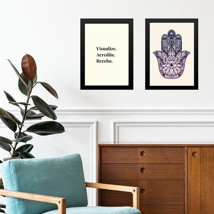 Kit 2 Quadros Lei Atração - Manifestação Sonhos 24x18cm - com Vidro:moldura Preta