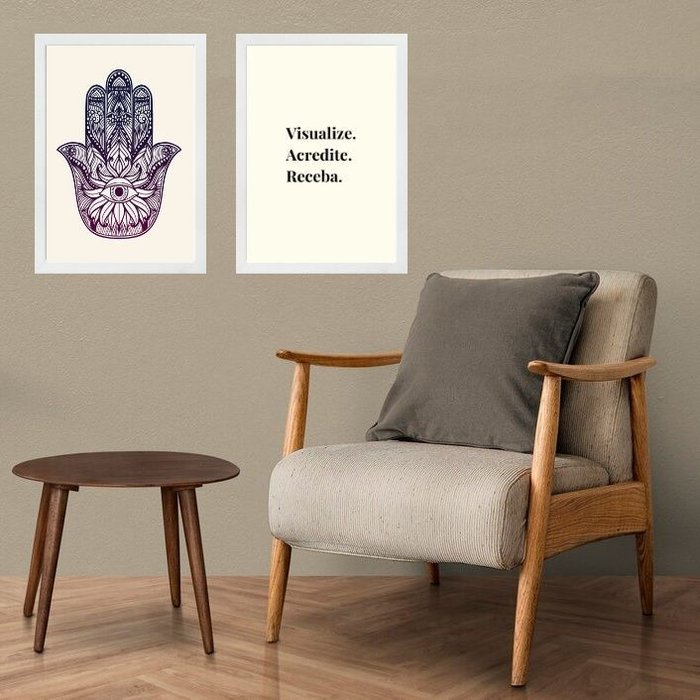 Kit 2 Quadros Lei Atração - Manifestação Sonhos 33x24cm:moldura Branca