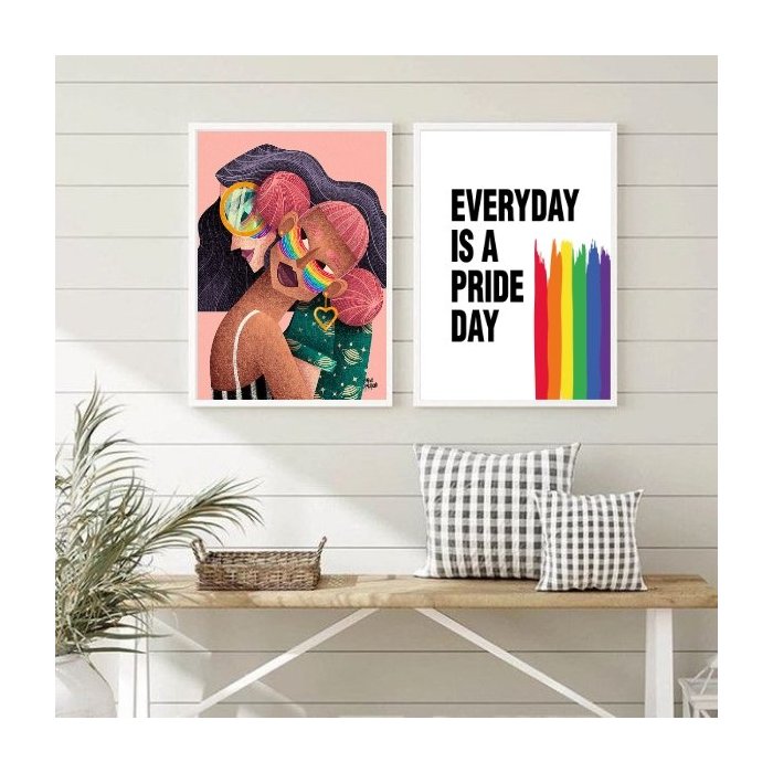 Kit 2 Quadros Lgbt Lésbicas Pride Day 24x18cm:madeira Branca