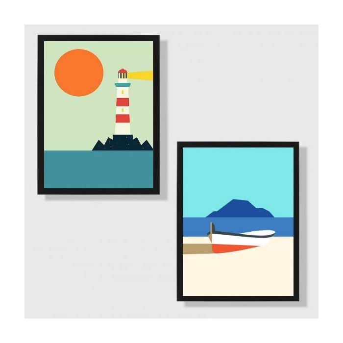 Kit 2 Quadros Marinha 45x34cm - com vidro:Madeira branca branca