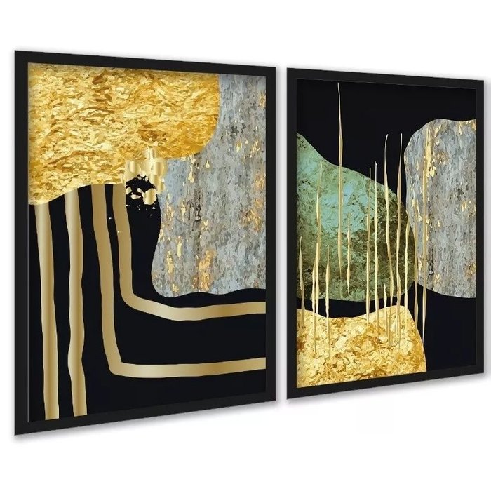 Kit 2 Quadros Modernos Abstratos Contemporâneos 45x34cm:moldura Branca