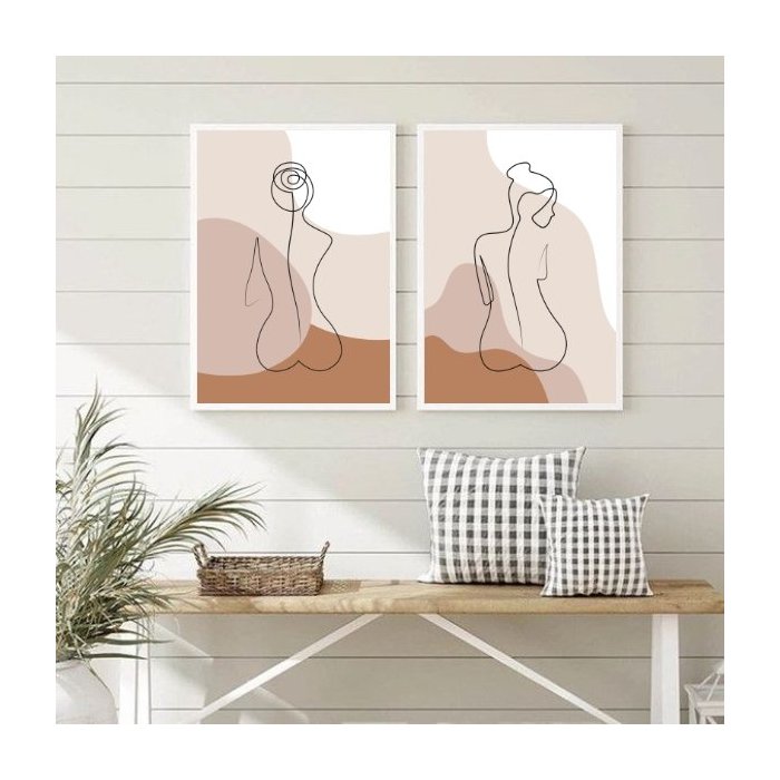 Kit 2 Quadros Nús Artísticos Tons de Bege 45x34cm - com Vidro:madeira Preta