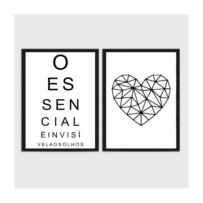 Kit 2 Quadros O Essencial É Invisível Olhos 45x34cm:Madeira branca