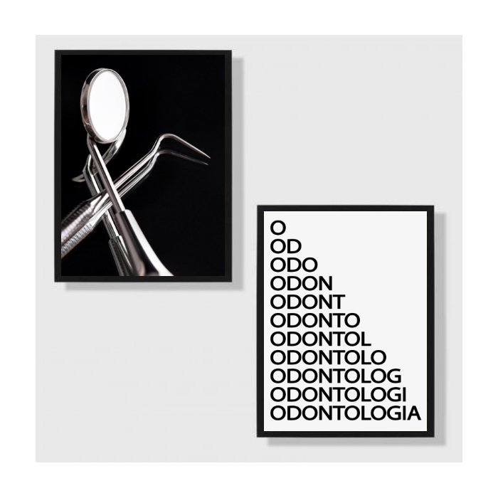 Kit 2 Quadros Odontologia Instrumentos 24x18cm:Madeira branca