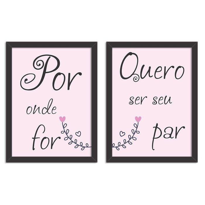 Kit 2 Quadros Decorativos Por Onde For Quero Ser Seu Par