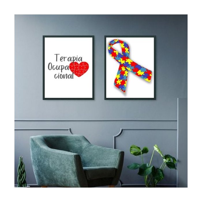 Kit 2 Quadros Terapia Ocupacional - Autismo 33x24cm:madeira Branca