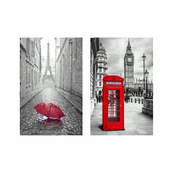 Kit 2 Quadros Torre Eiffel e Paris Londres Preto e Branco