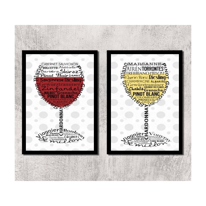 Kit 2 Quadros Vinho Branco E Vinho Tinto 45x34cm - com vidro:Madeira branca