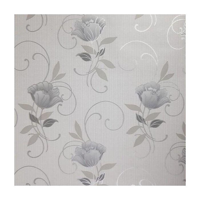 Kit 2 Rolos De Papel De Parede Lavável Floral Prata Perolado