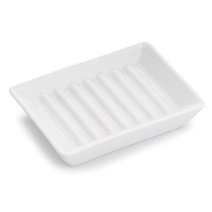 Este porta sabonete em barra é fabricado em porcelana nacional, material que confere resistência e durabilidade ao produto, sem perder a delicadeza da louça.