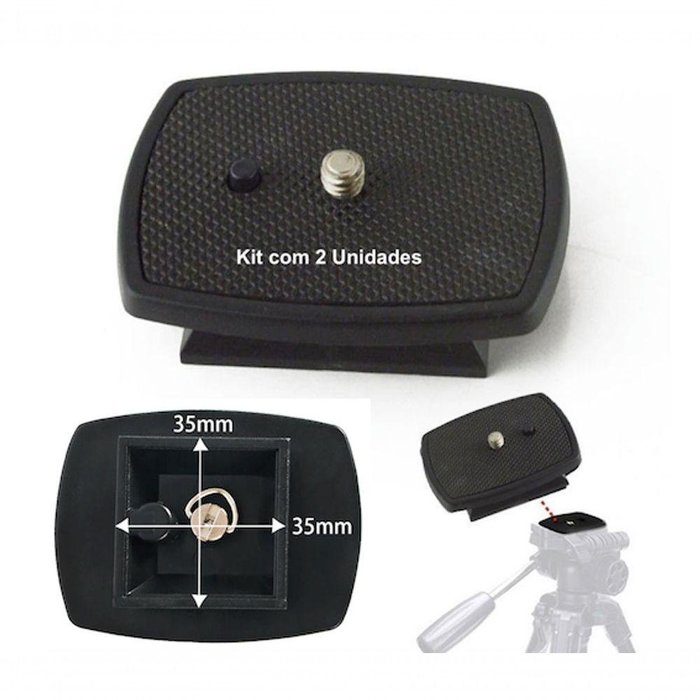 Kit 2 Sapatas Base 35mm - Sapata Engate Rápido Do Tripé, Monopod, Digipod, Compatível Com Diversos Modelos E MarcasKit com 2 Sapatas Engate Rápido para Tripé de Diversos Modelos/MarcasCONFIRA AS MEDIDAS DO ENCAIXE ANTES DE COMPRARVOCÊ VAI RECEBER 2 UNIDADES DA SAPATA DESCRITA ABAIXOPRATO / PLATE / SAPATA C/ ENGATE RÁPIDO 35mm x 35mm GENÉRICO - SERVE EM DIVERSOS MODELOS E MARCAS DE TRIPÉEngate Rápido possibilita a utilização de uma câmera em diversos modelos de tripés, fazendo com que a máquina esteja presa e segura na base do tripé, dando-lhe estabilidade.Serve em todos os modelos de tripé com base de encaixe medida 3,5cm x 3,5cm.Tamanho Superfície de Encaixe da Camera: 66mm x 48mm (parafuso central para anexar a camera)Tamanho da base da sapata: 35mm x 35mmCONFIRA AS MEDIDAS DO SEU TRIPÉ E CONFIRME COM AS MEDIDAS DO ANÚNCIO, ANTES DE CONFIRMAR SUA COMPRA.