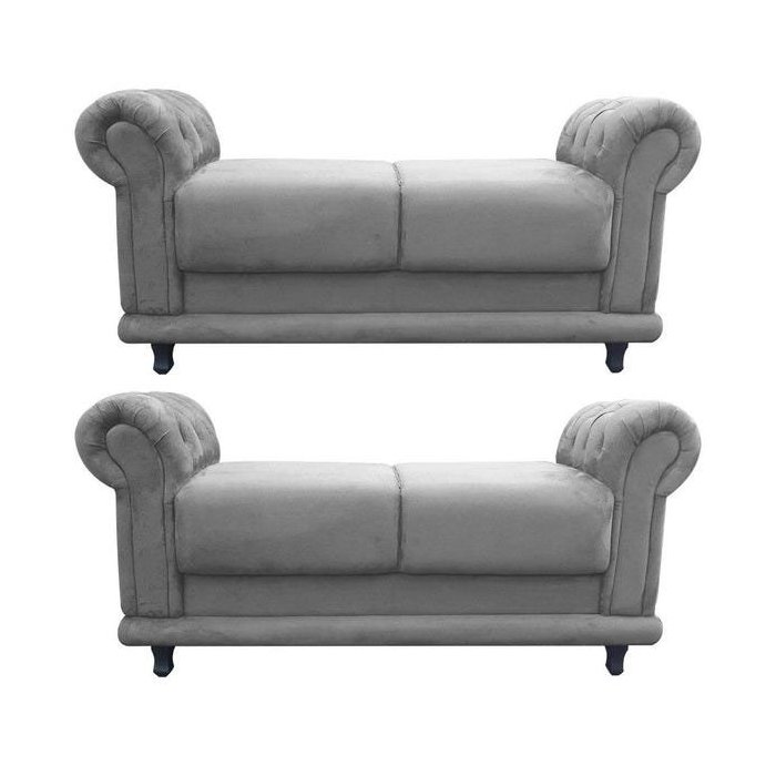 Kit 2 Sofá Retrô Barcelona Namoradeira Calçadeira Suede Cinza - D'Rossi