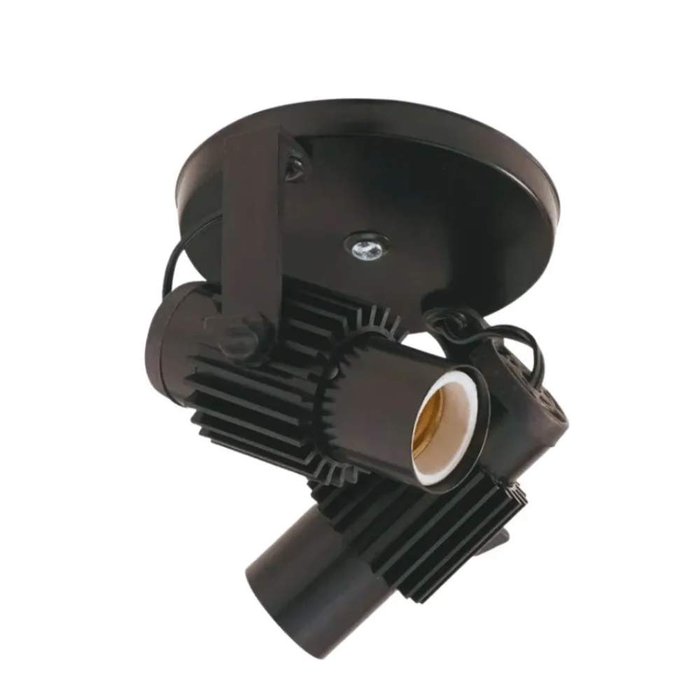 Kit-2 Spot B2 Simples Aletado Para 2x E27 Led Bulbo Preto C/ Preto - Bivolt Enerlux