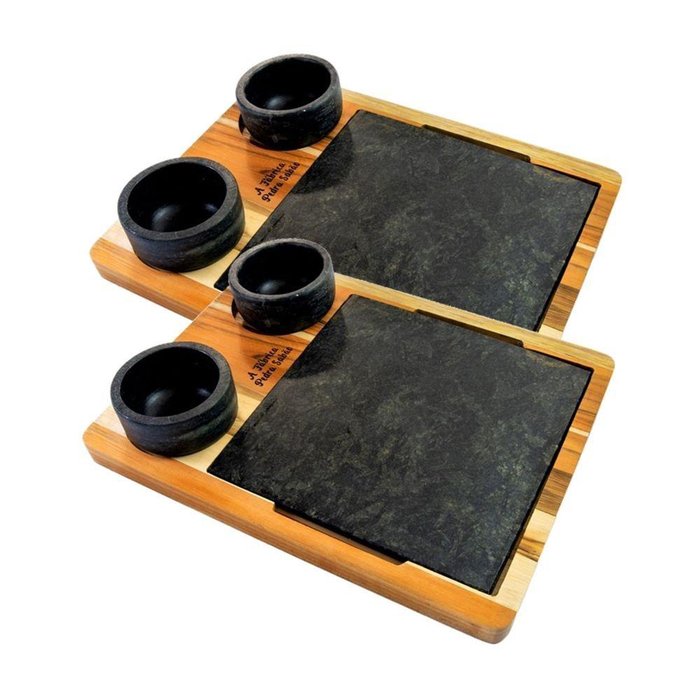 Kit 2 Tábua 04 Molheiras em Pedra Sabão e Suporte G 25x25cm