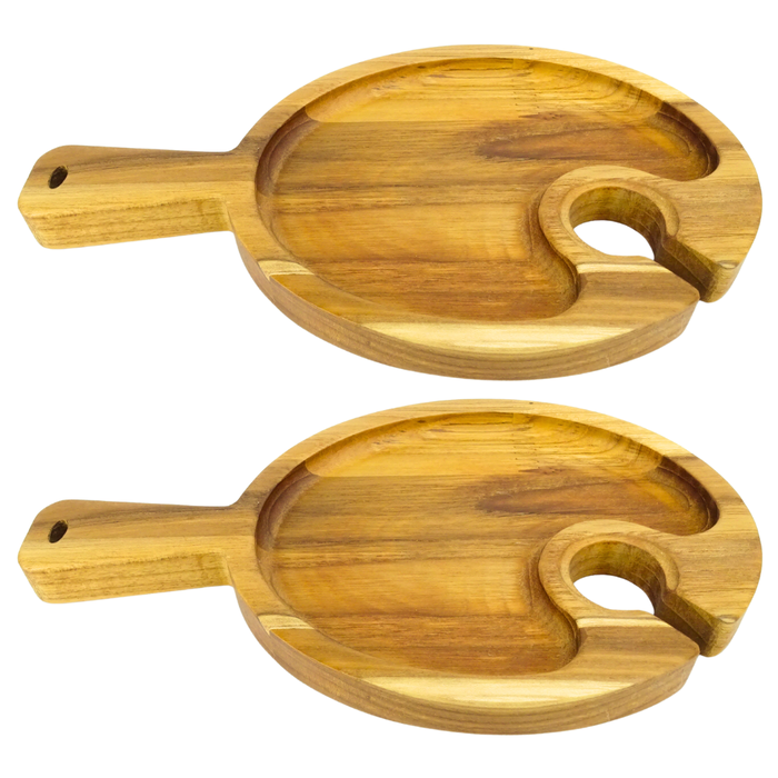 Kit 2 Tábuas Prato Petisqueira de Teca Suporte Taça Copo