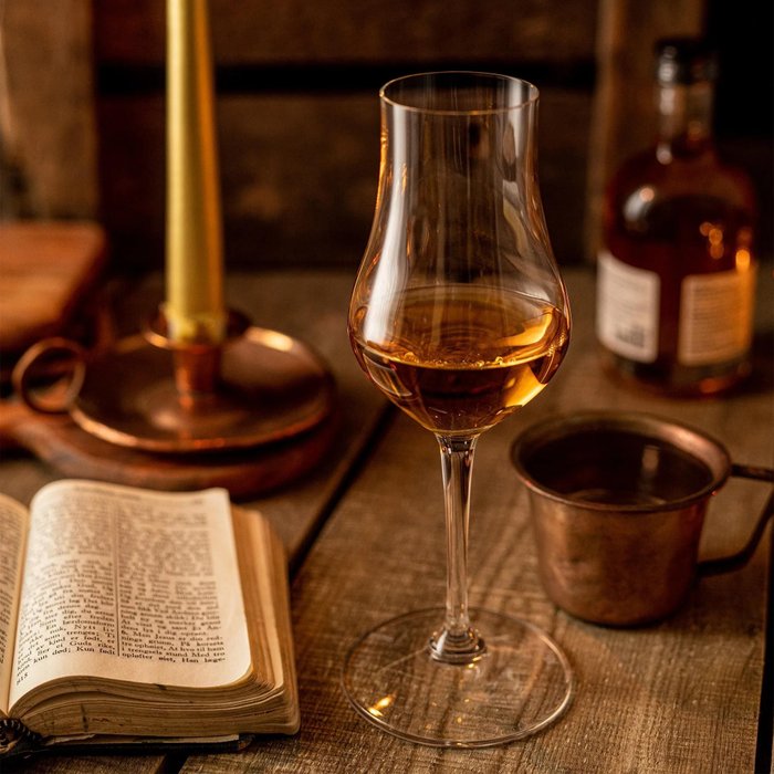 O copo funciona especialmente bem com rums dourados, escuros, overproof e envelhecidos. Ele destacará os aromas de frutas e especiarias, como baunilha, noz-moscada, canela, cravo, caramelo ou banana, enquanto equilibra o álcool e a doçura perfeitamente no paladar.