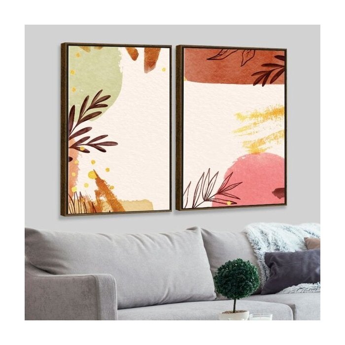 Kit 2 Telas Canvas com Moldura Abstrata Ramos Madeira - Grande Madeira