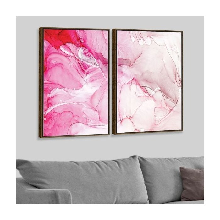 Kit 2 Telas Canvas com Moldura Abstrata Rosa Madeira - Grande Madeira