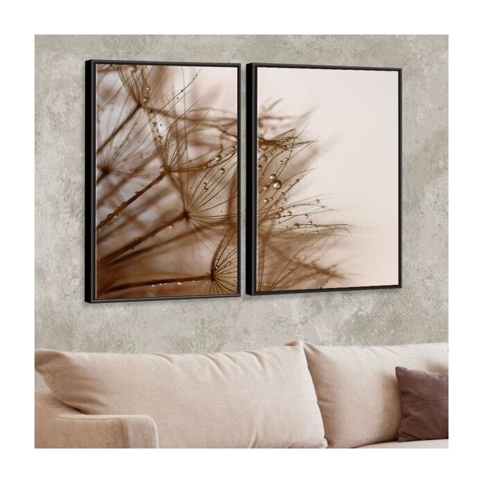 Kit 2 Telas Canvas com Moldura Dente de Leão e Gotas de Orvalho Preto - Médio -